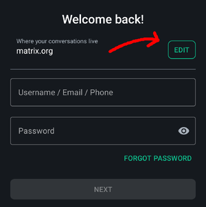 | Display title | File:Element login screen emphasizing homeserver edit button.png |